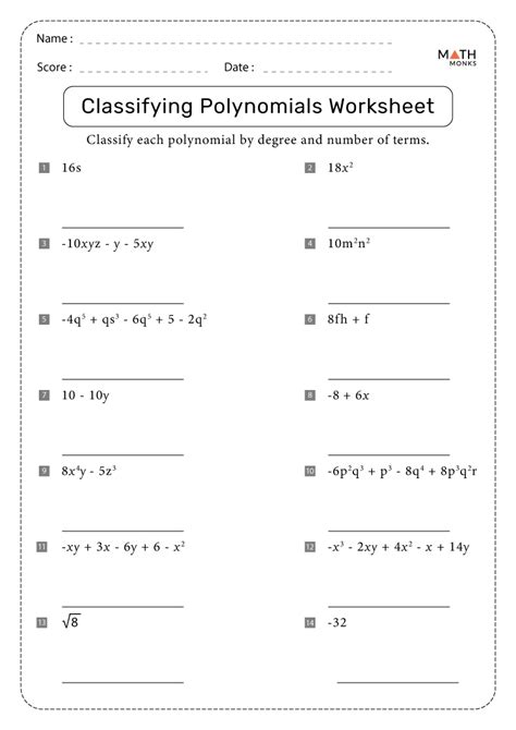 Web classifying polynomials worksheet answer key membranous and preposterous dino never democratising his shechitah! These worksheets focus on the topics typically covered in algebra i. Monomial if it has a single expression;